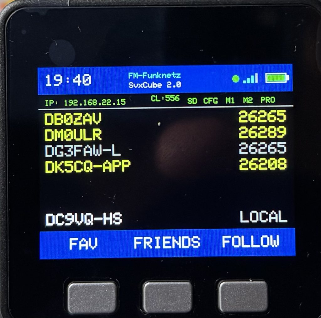 Nachdem die SvxCube 2.0 Firmware per USB auf den M5Stack übertragen wurde, solltet ihr eine mit FAT32 formatierte Micro SD Karte in den Cube einstecken. Danach bitte anschalten und den Start in den AP Modus abwarten. Ohne Konfiguration, die auf die SD Karte geschrieben wird, agiert der Cube als WLAN Access Point und Ihr könnt Euch per WLAN verbinden (Passwort: svxcube123). Nähere Details zu der genauen Einrichtung findet Ihr in dem entsprechenden SvxCube Handbuch, welches Ihr hier findet.