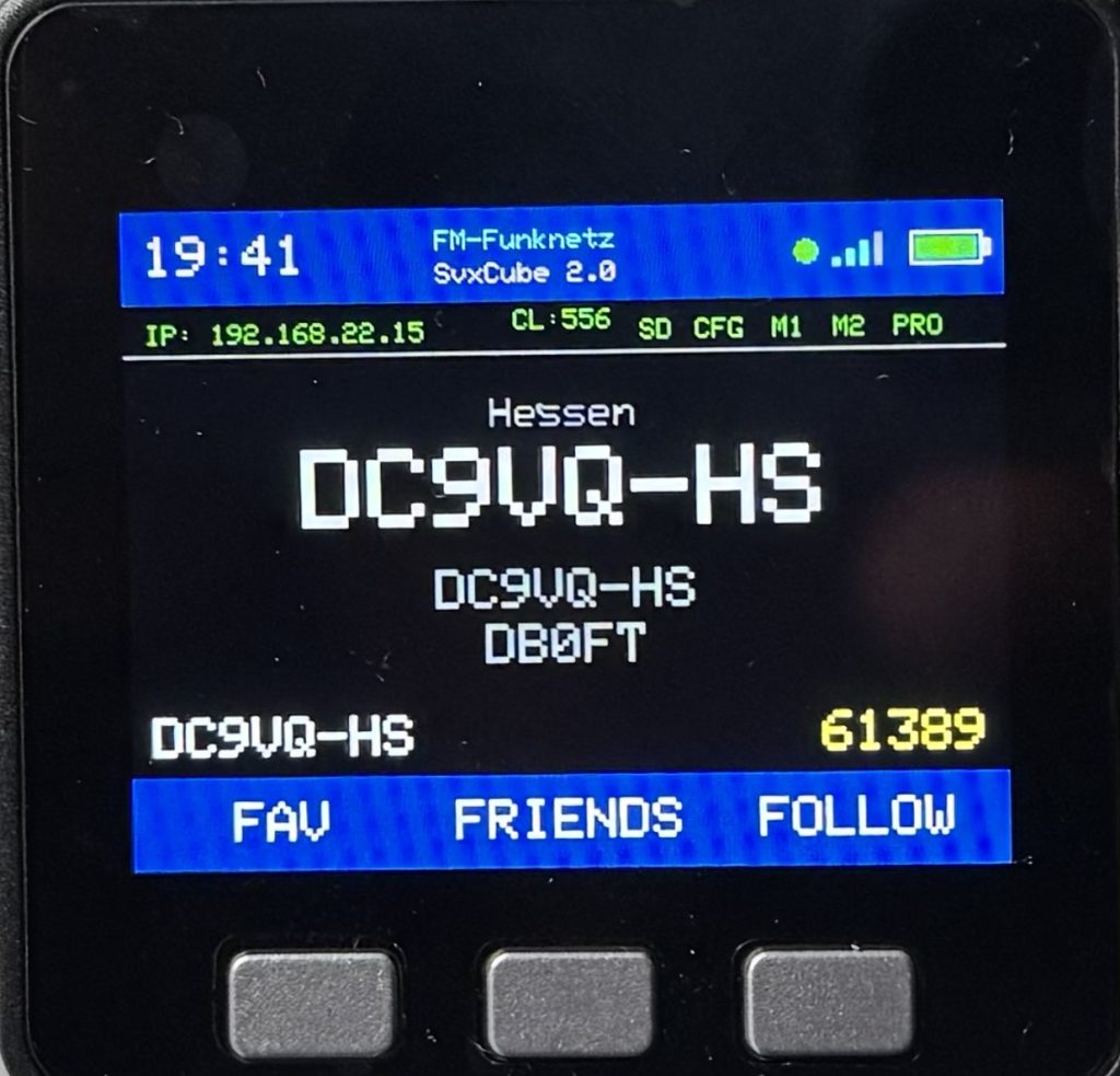 • Sobald ein QSO auf dem verbunden Hotspot/Relais beginnt, zeigt der Cube das Rufzeichen des Relais oder OM’s in einer Live Sicht