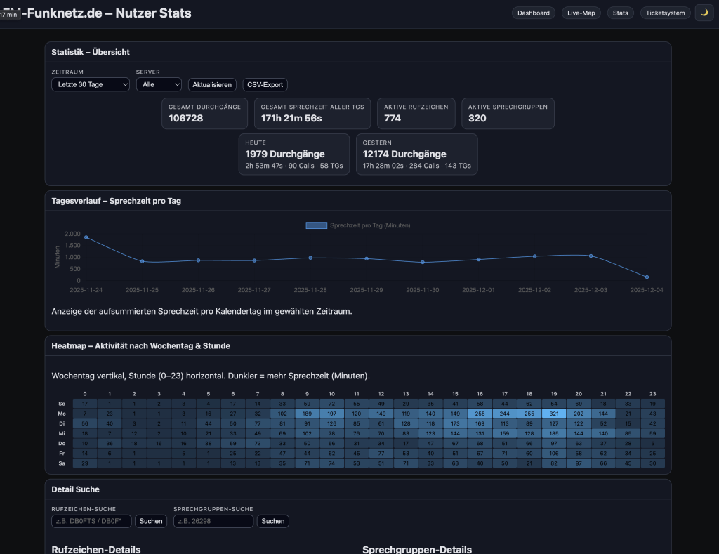 Ich bin ja ein großer Freund von Statistiken und habe mich umso mehr über das neue Statistik Dashboard vom FM-Funknetz gefreut. Vielen Dank dafür !