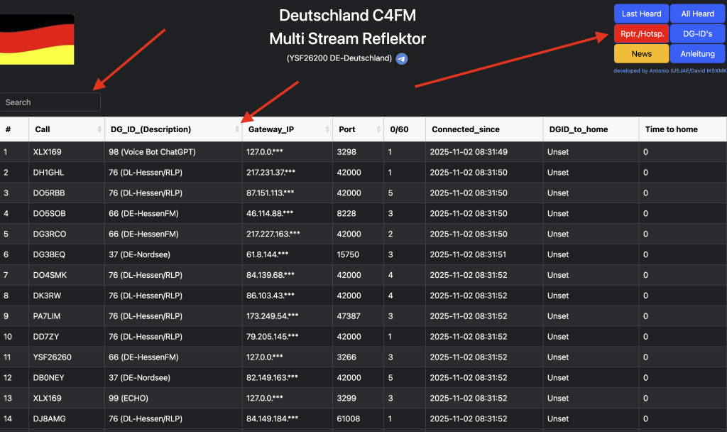 Der Bereich „Repeater/Hotspots“ hat nun analog zum Bereich „All Heard“ eine Suchfunktion und eine Filterfunktion erhalten.