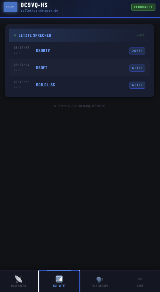 • Allgemeine Übersicht (Reflector Aktivität, Reflector Status, Hardware Infos)