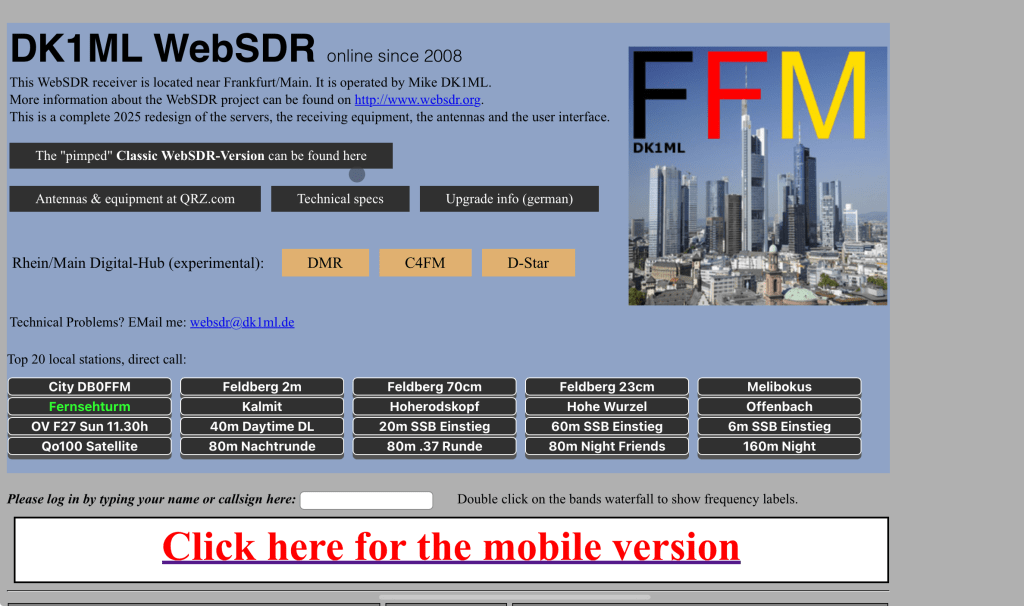 Eine sehr umfangreiche und modifizierte Version eines WebSDR hat uns Mike DK1ML zur Verfügung gestellt. Basierend auf der WebSDR Version von PA3FAM hat er zahlreiche Modifikationen vorgenommen, die er in seinen Release Notes näher erklärt.